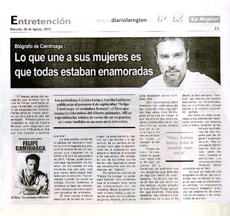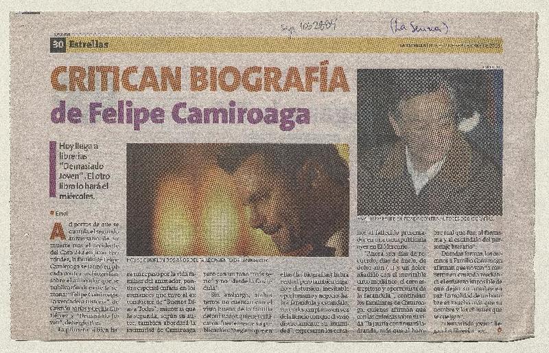 Critican biografía de Felipe Camiroaga [artículo].
