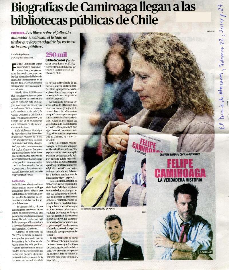 Biografías de Camiroaga llegan a las bibliotecas públicas de Chile [artículo] Camila Espinoza.
