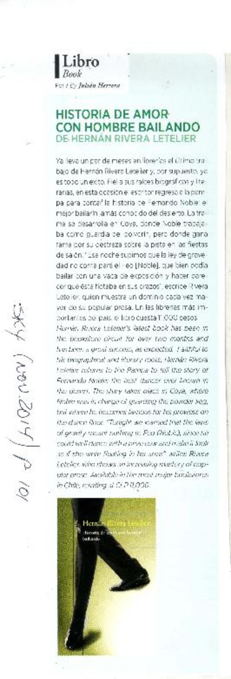 Autores chilenos - Historia de amor con hombre bailando - Rivera Letelier, Hernán