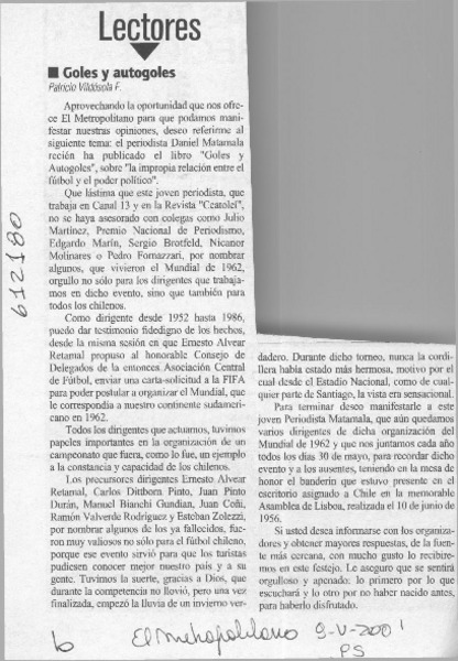 Goles y autogoles [artículo] Patricio Vildosola F.