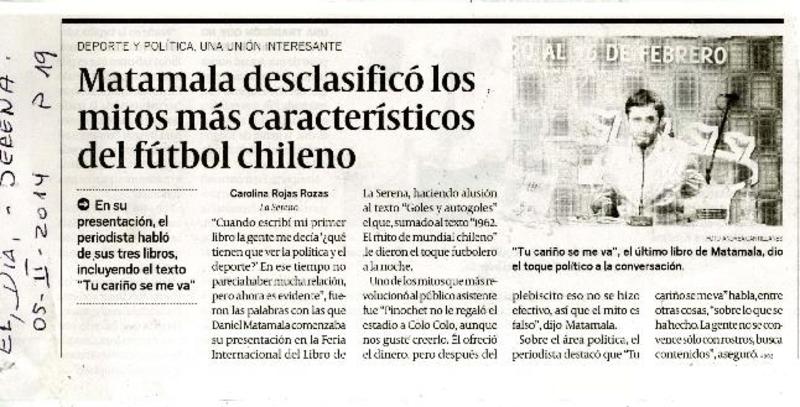 Matamala desclasificó los mitos más caracteristicos del futbol chileno [artículo] Carolina Rojas Rozas