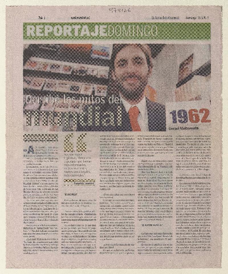 Autores chilenos - Entrevistas - Matamala, Daniel - 1962, el mito del mundial chileno