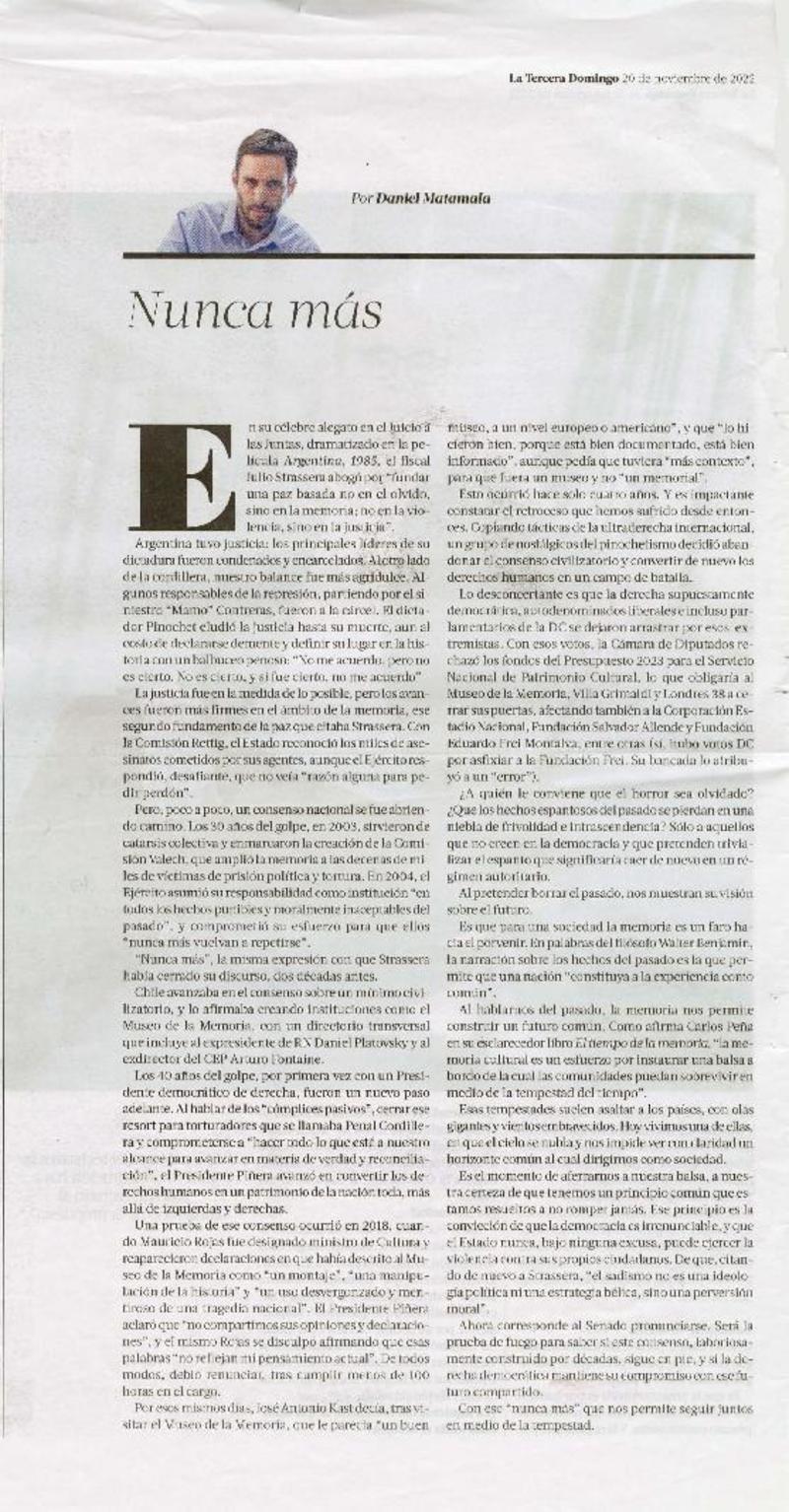 Nunca más [artículo].