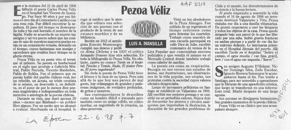 Teillier recibió premio de poesía Eduardo Anguita [artículo] Oscar Vega.
