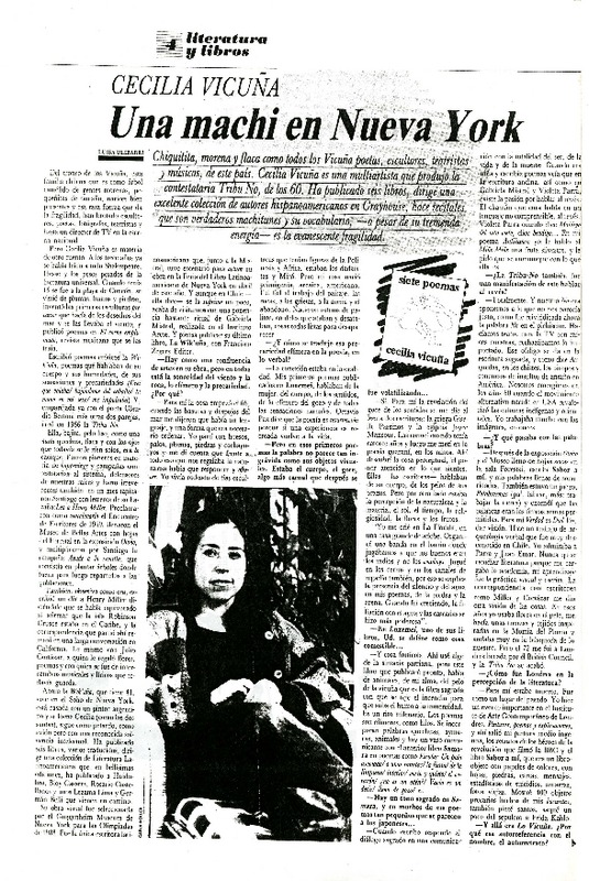 Una machi en Nueva York (entrevista) [artículo] Luisa Ulibarri.