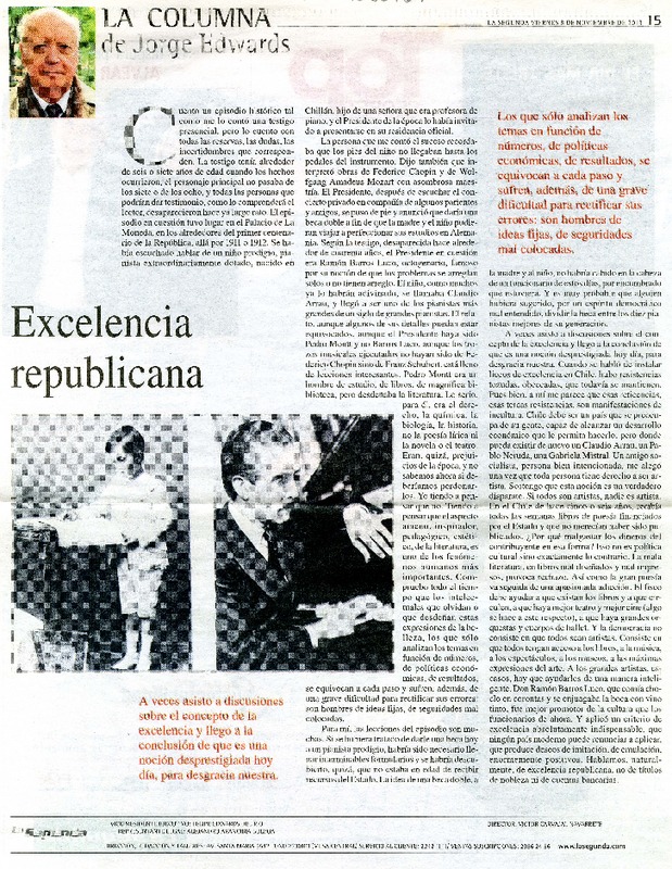 Excelencia republicana [artículo] Jorge Edwards.