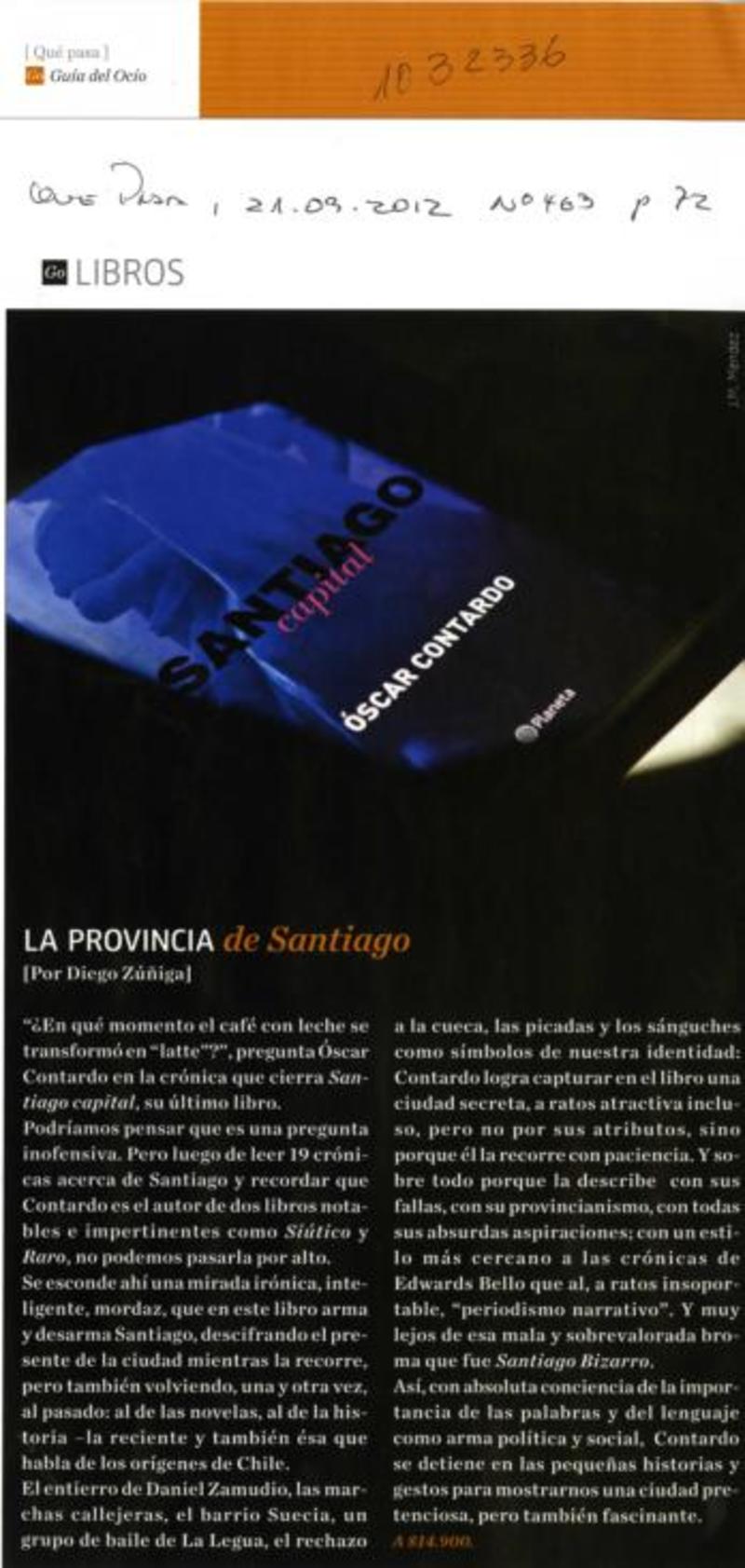 Autores chilenos - Contardo, Óscar - Santiago capital