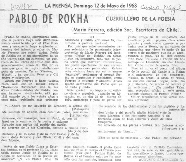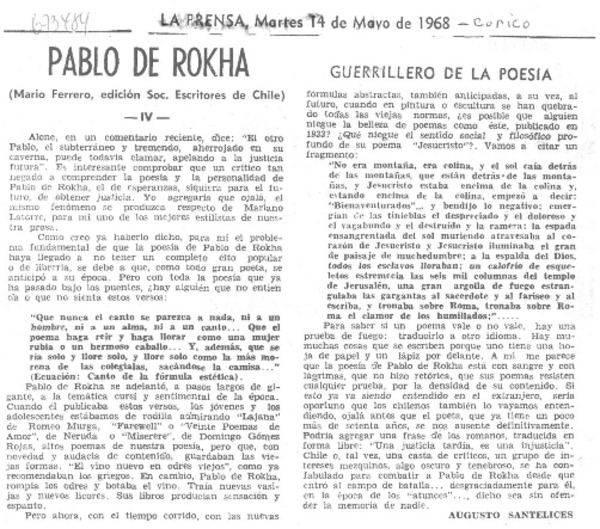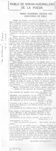 Pablo de Rokha, guerrillero de la poesía [artículo] Augusto Santelices.