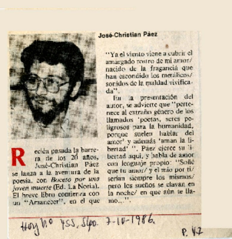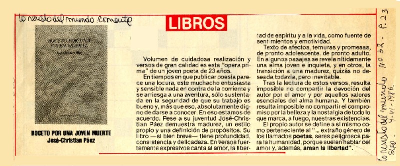 Boceto para una joven muerte [artículo] Hugo Montes.
