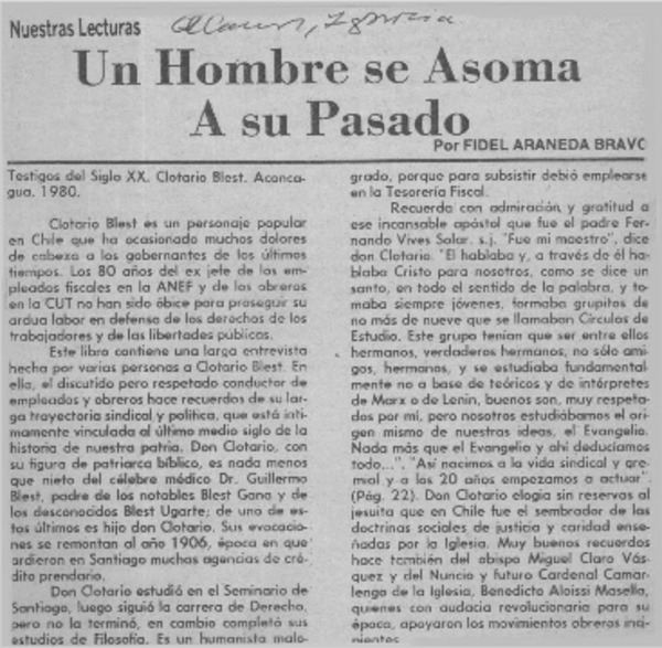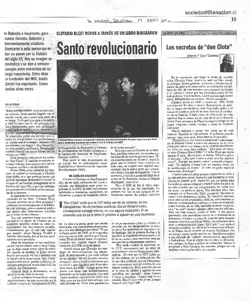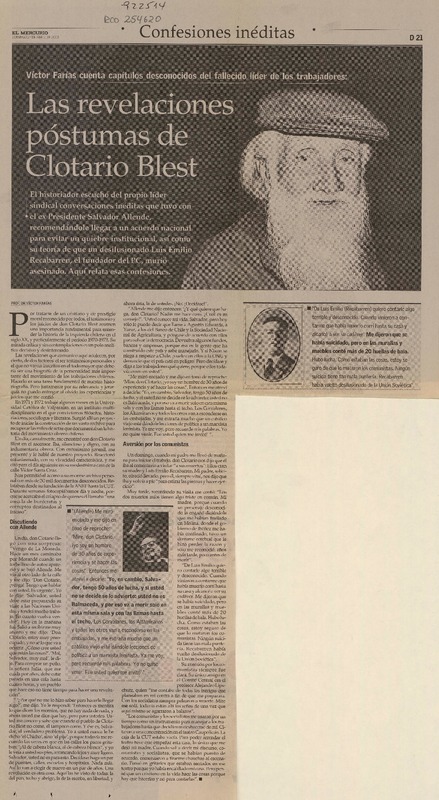 Las revelaciones póstumas de Clotario Blest [artículo] Víctor Farías.