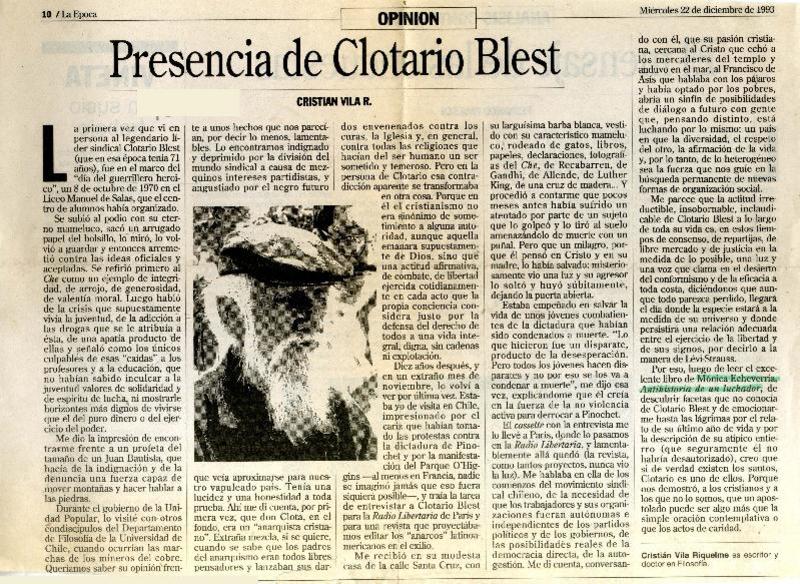 Presencia de Clotario Blest [artículo] Cristián Vila R.