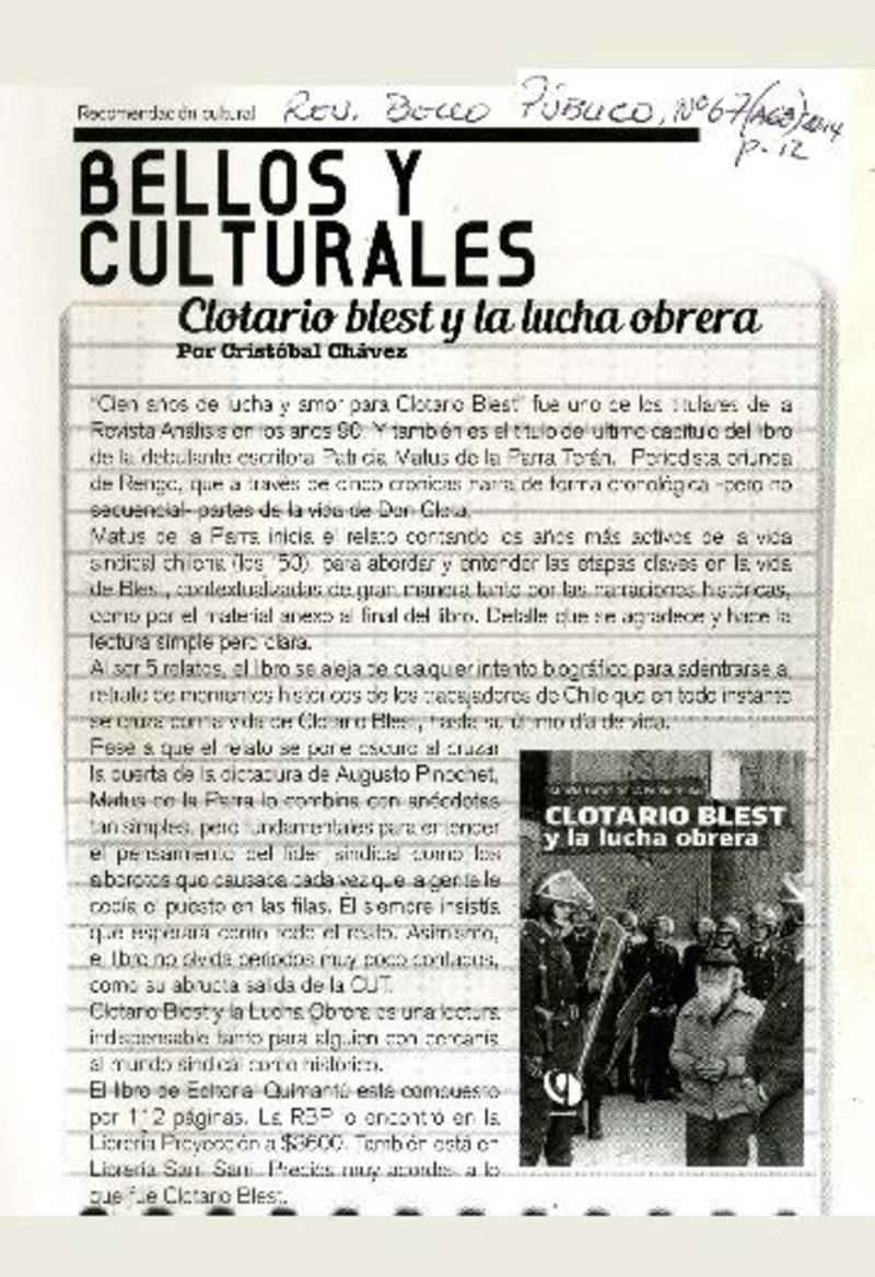 Clotario Blest y la lucha obrera [artículo] Cristóbal Chavez