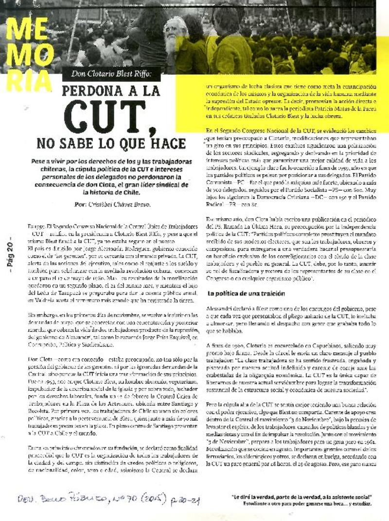 Don Clotario Blest Riffo: Perdona a la CUT, no sabe lo que hace [artículo] Cristóbal Chávez Bravo.