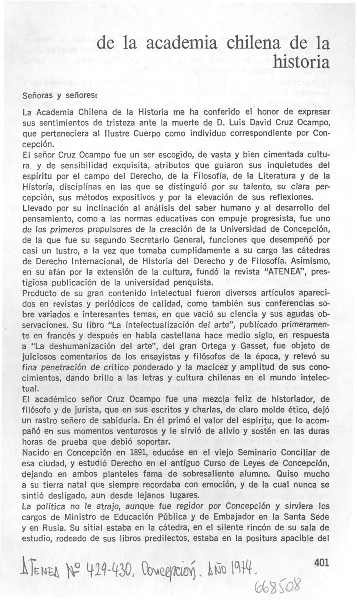 De la Academia Chilena de la Historia [artículo] Juan Mujica.