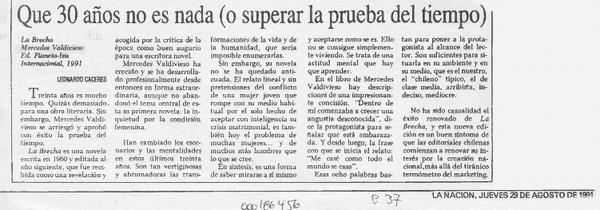 Que 30 años no es nada (o superar la prueba del tiempo) [artículo] Leonardo Cáceres.