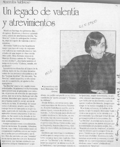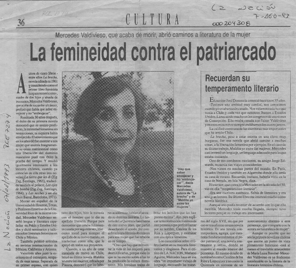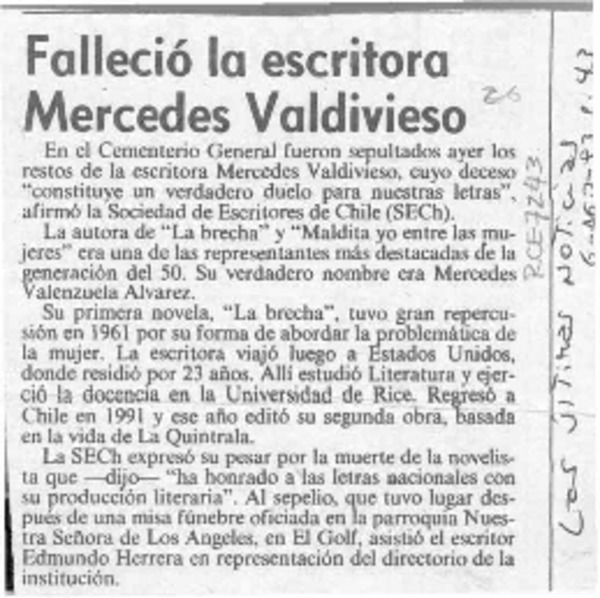 Falleció la escritora Mercedes Valdivieso [artículo].