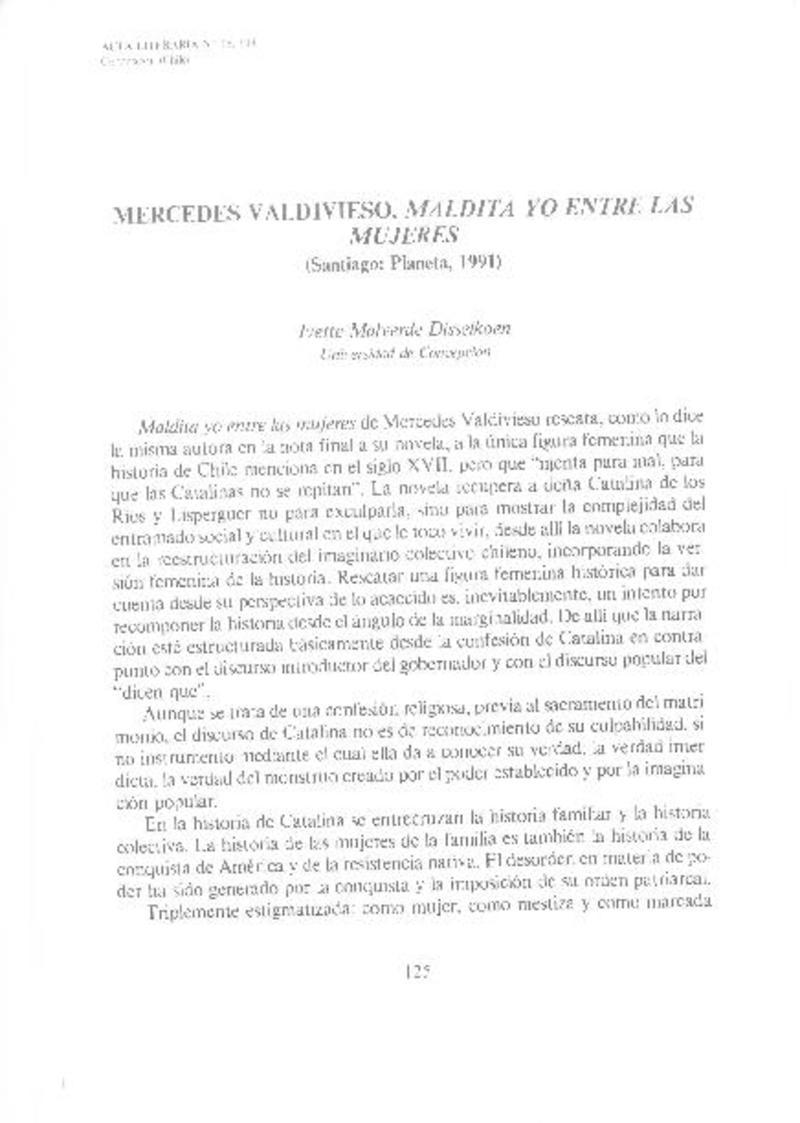 Mercedes Valdivieso. Maldita yo entre las mujeres [artículo] Ivette Malverde Disselkoen.
