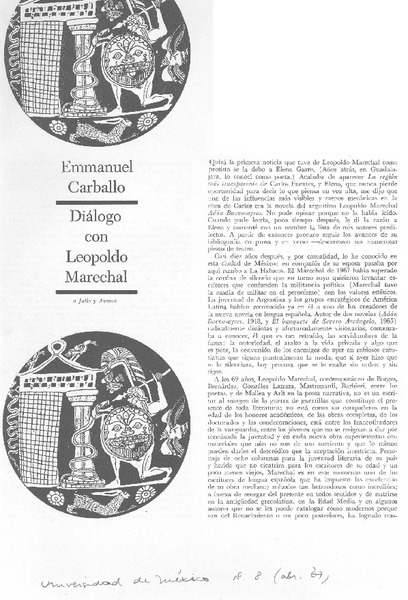 Diálogo con Leopoldo Marechal (entrevista) [artículo] Emmanuel Carballo.