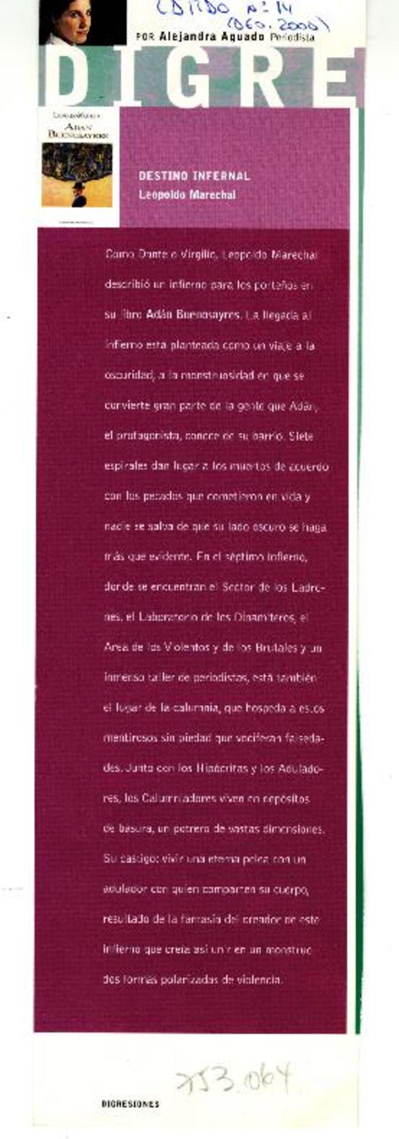 Destino infernal [artículo] Alejandra Aguado.