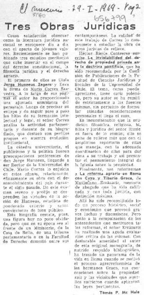 Tres obras juridicas [artículo] Tomás P. Mac Hale.