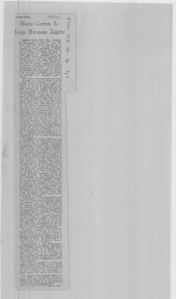 Mario Correa S.: Jorge Hunneus Zegers [artículo] P. T.