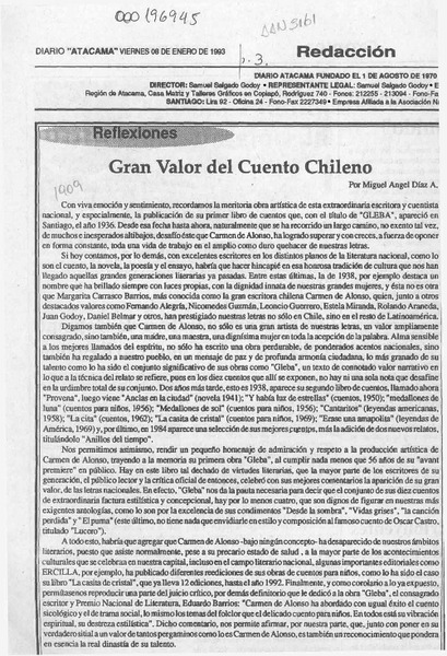 Gran valor del cuento chileno [artículo] Miguel Angel Díaz A.