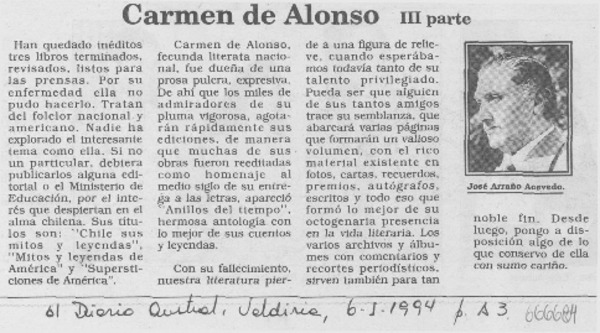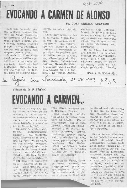 Evocando a Carmen de Alonso [artículo] José Arraño Acevedo.