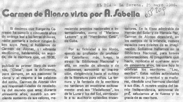 Carmen de Alonso vista por A. Sabella. [artículo]