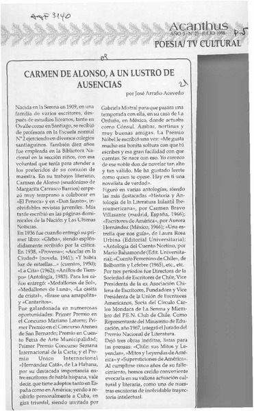Carmen de Alonso en definitiva ausencia [artículo] José Arraño Acevedo.