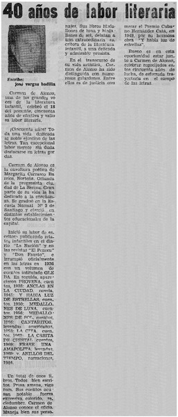 40 años de labor literaria [artículo] José Vargas Badilla.