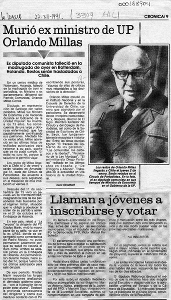 Murió ex ministro de UP Orlando Millas [artículo] Irene Strodthoff.