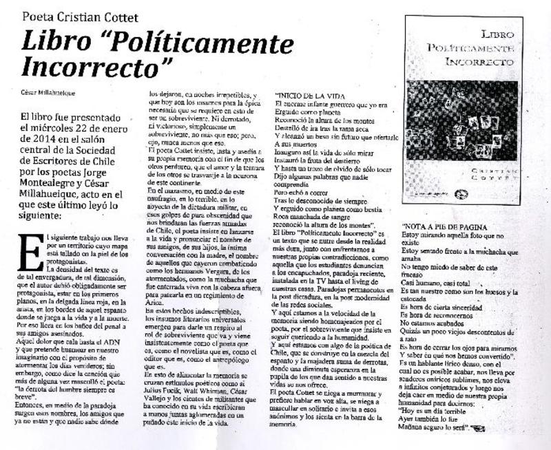 Libro "Políticamente Incorrecto" [artículo] César Millahueique