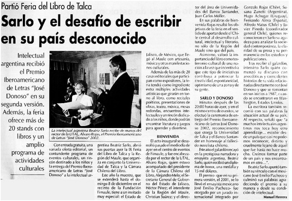 Sarlo y el desafío de escribir en su país desconocido [artículo] Manuel Herrera.