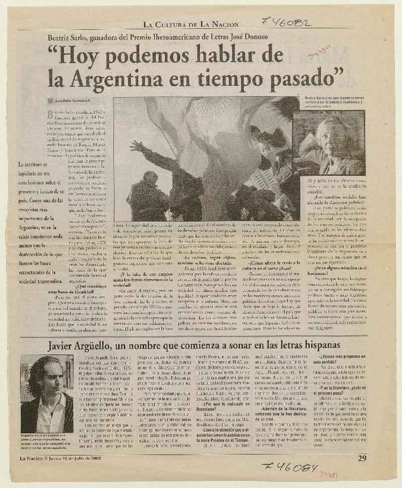 Hoy podemos hablar de la Argentina en tiempo pasado": [entrevistas] [artículo] Juan Pablo Sarmiento P.