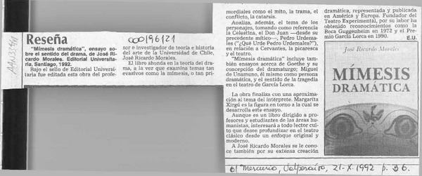 MORALES, JOSE RICARDO - MIMESIS DRAMATICA