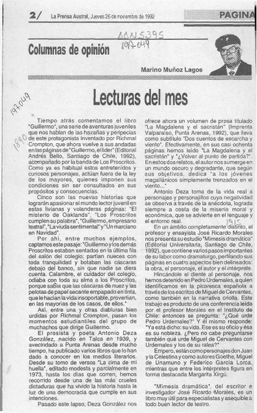 Lecturas del mes [artículo] Marino Muñoz Lagos.