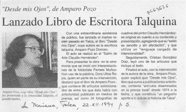 Amparo Pozo Donoso, "Desde mis ojos" [artículo] José Arraño Acevedo.