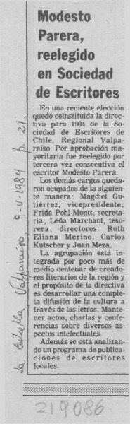 Modesto Parera, reelegido en Sociedad de Escritores [artículo].