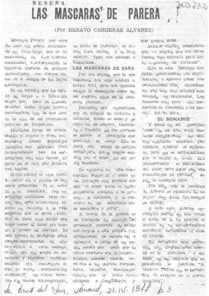 Las máscaras de Parera [artículo] Renato Cárdenas Alvarez.