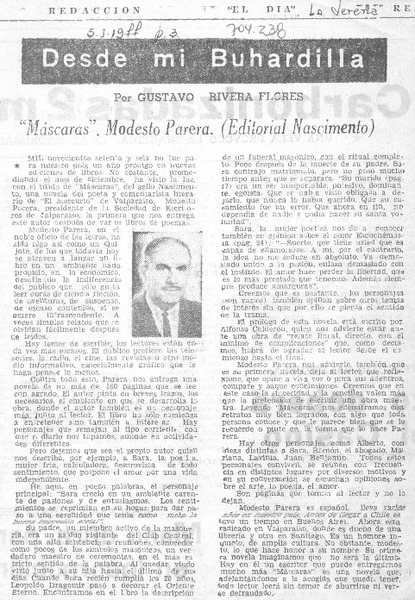 "Máscaras", Modesto Parera [artículo] Gustavo Rivera Flores.