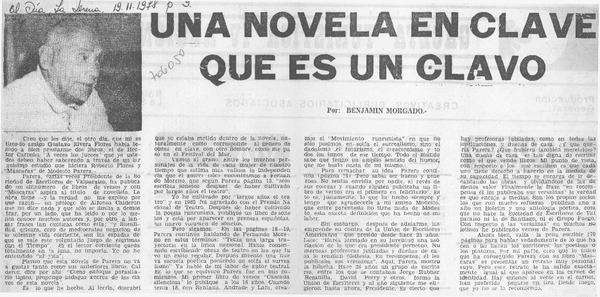 Una novela en clave que es un clavo [artículo] Benjamín Morgado.
