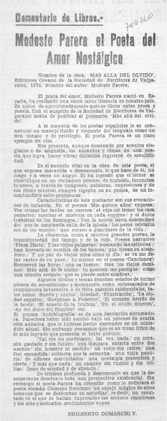 Modesto Parera el poeta del amor nostálgico [artículo] Edilberto Domarchi V.