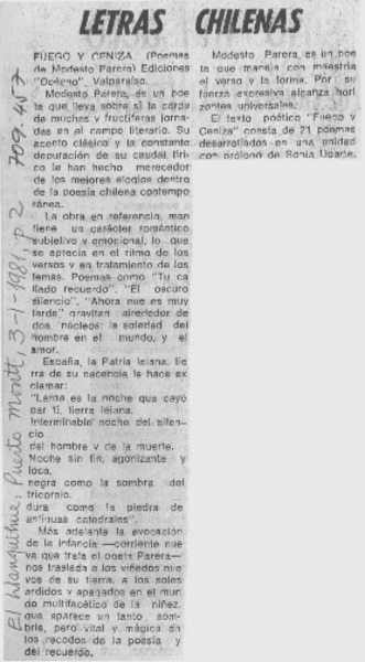 Autores chilenos - Parera, Modesto - Fuego y cenizas