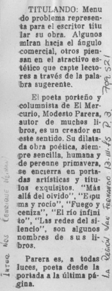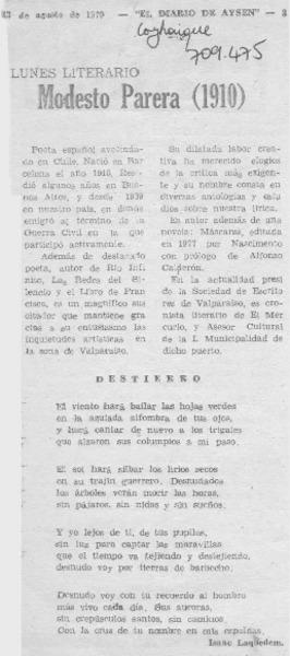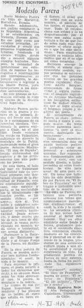 Modesto Parera, poeta en alza [artículo] Alfonso Larrahona Kästen.