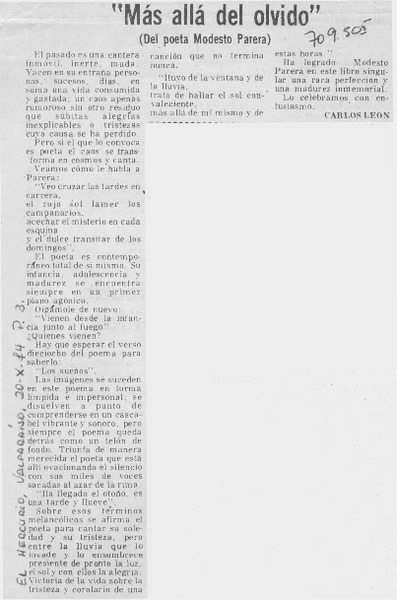 "Más allá del olvido" [artículo] Carlos Léon P.