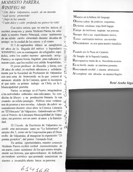 Modesto Parera, Winipeg 60 [artículo] René Acuña Vega
