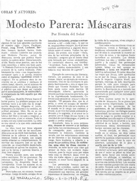 Modesto Parera: Máscaras [artículo] Hernán del Solar.