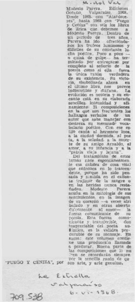 "Fuego y ceniza" [artículo] M. del Vial.