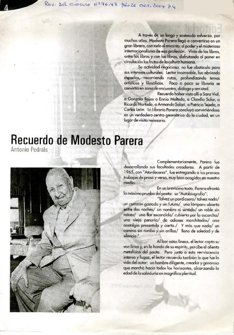 Recuerdo de Modesto Parera [artículo] Antonio Pedrals.
