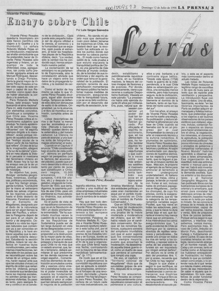 Ensayo sobre Chile [artículo] Luis Vargas Saavedra.